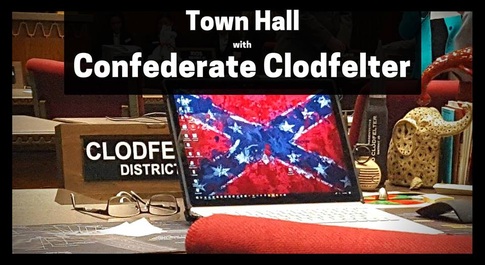 Remember the coverage of Todd Clodfelter’s display — on the floor of the Arizona House of Representatives — of his laptop computer’s screensaver depicting what most of us think of as “The Confederate Flag”? He is immune to the argument, quoted in a Washington Post interview with a Civil War Historian, that “You can’t filter out the racism and leave what’s pure and historical in the flag, because that purity doesn’t exist. Some things are so primitively stained or tarnished by history that they can never be set side. The flag is a perfect example.” Clodfelter defended his use of the flag as “acceptable” imagery. This is the Clodfelter I know.