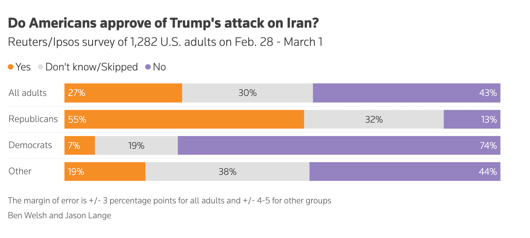 A Reuters/Ipsos poll found that just one in four Americans approve of the attacks on Iran.