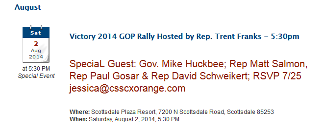 Doubtless, much money will end up in Franks’ coffers (and those of Salmon, Gosar, and Schweikert) as a result of Huckabee’s visit.