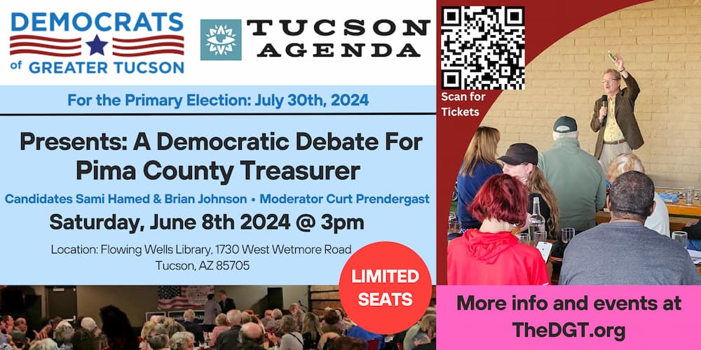 The Democrats of Greater Tucson, in conjunction with the Tucson Agenda Substack newsletter, sponsored a live debate event for the Democratic candidates vying to take on the appointed Republican incumbent this fall. Here is the video of the event for you to enjoy. There are surprisingly substantive differences, as well as big differences in approach … Read more