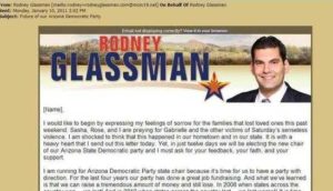 Rodney began life as a Republican when he first moved to Tucson from California in 1997. He transitioned to Independent in 1999, then Democrat in 2000, and has recently switched back to the Republican party as a candidate for the Arizona Corporation Commission. Throughout his career, opportunism has been the name of Rodney’s game. When Rodney worked for Rep. Grijalva, sat on the Tucson City Council, and ran for U.S. Senate he was an environment-protecting, Planned Parenthood-loving, pro-labor progressive Democrat. After his unsuccessful U.S. Senate race, Rodney launched a failed bid for Arizona Democratic Party Chair in 2011. Ever the class act, two days after Congresswoman Giffords was shot on January 8, Rodney sent out an email exploiting the tragedy.