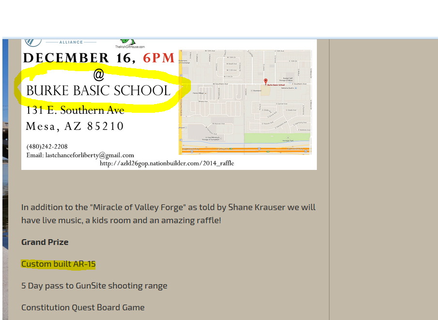 As far as raffling off an AR-15 in a school two years after the Newtown shootings: I see nothing wrong with that. Public schools are public buildings and you cannot create sacred shrines of them in commemoration of tragedies that occur in one of them. It was a terrible tragedy that occurred, but life has to move on.