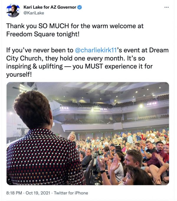 Kari Lake holding an event at Phoenix’s Dream City church with the Christian nationalist network “Flashpoint,” featuring a lineup of Christian Supremacists like the Flashpoint hosts, Sean Feuct, Mike Lindell, and Dutch Sheets. pic.twitter.com/DA2saiBmhW
